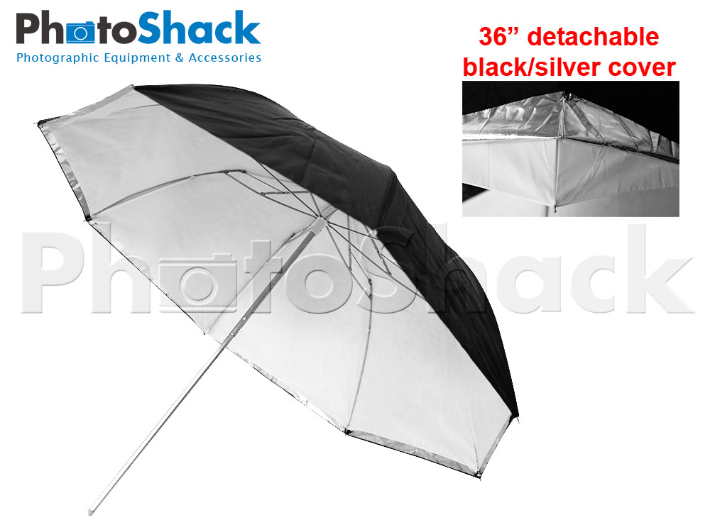 - this umbrella is a translucent (shoot-through diffusion) umbrella with a detachable Black/Silver (reflection) cover