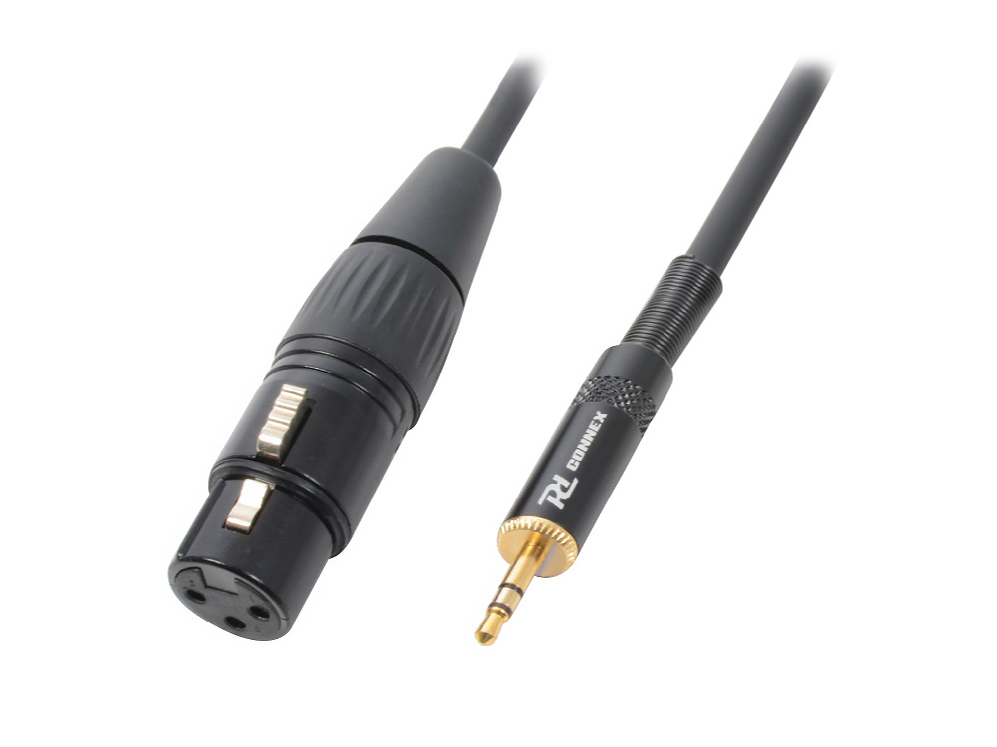 D Connex professional HQ 1 meter XLR (M) - 3.5 TRS Jack signal cable. This flexible signal cable is fitted with high quality metal connectors and guarantees a trouble-free and reliable signal transmission.