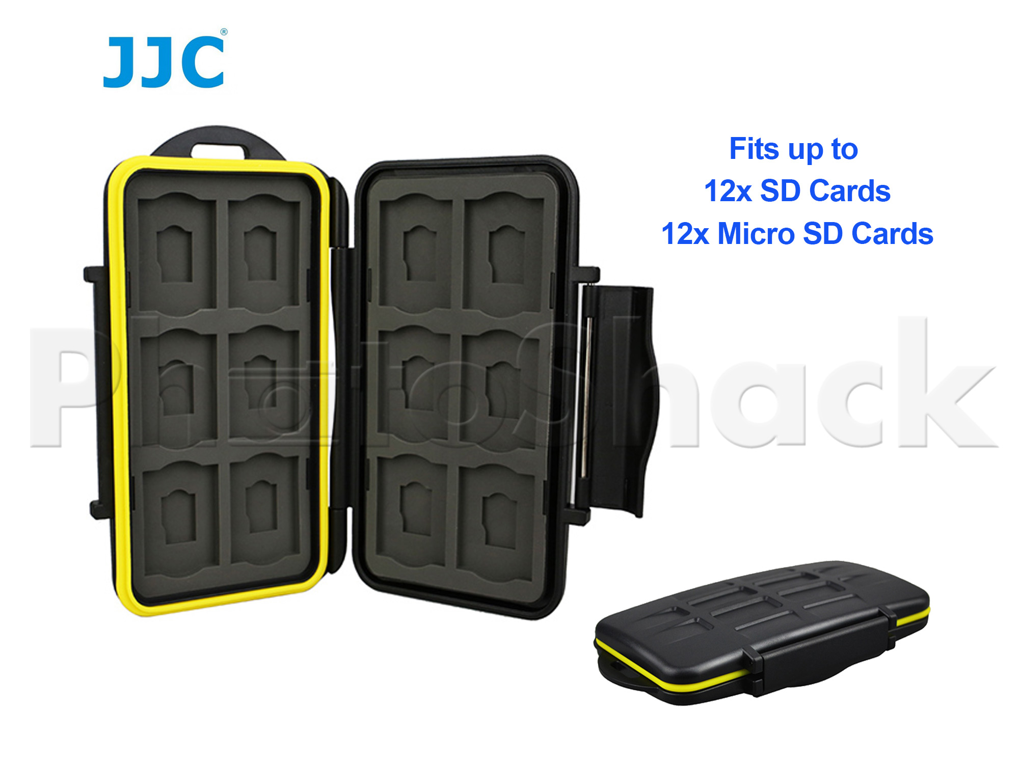 JJC MC-SDMSD24 Memory Card Case is a tough, water-resistant ABS case made to carry and store memory cards. A moulded protective rubber interior lining protects against harmful shocks, by securing each memory card within the case. Even if the case is thrown from the height of 1m, the case keeps the cards securely in the slots. Each slot is strictly tailored to fit the card perfectly and protects the cards from going around. The case adopts a compact design, the two sides both allow you to store memory cards. The water-resistant silicone seal keeps unwanted debris and water from entering the case. The ergonomic locking system allows you to open it with your fingers easily.