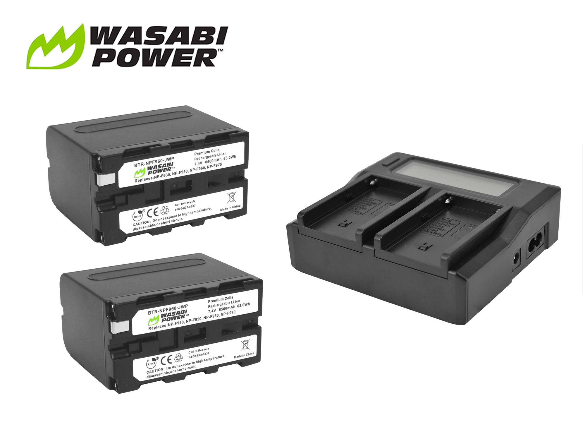 Wasabi Power NP-F960 for Sony Video camera kit includes 2 batteries and 1 dual AC charger. All Wasabi items meet or exceed OEM standards. It is made with Premium Grade-A cells to provide maximum battery life and also comes with a 3-year manufacturer warranty. Compatible with CCD-TR series DCR TR series etc