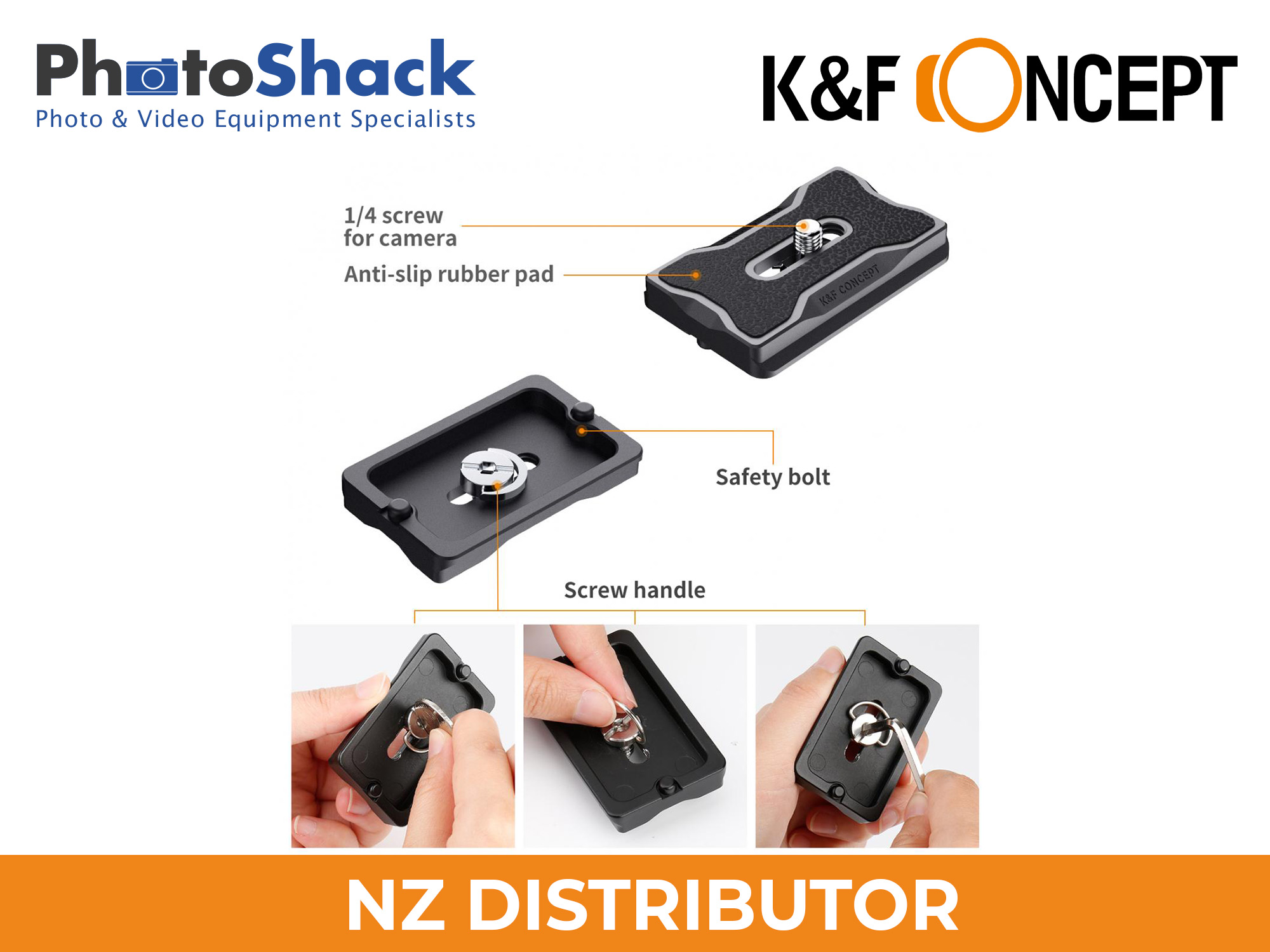 - 1/4” quick release plate suitable for DSLR & Mirrorless Cameras