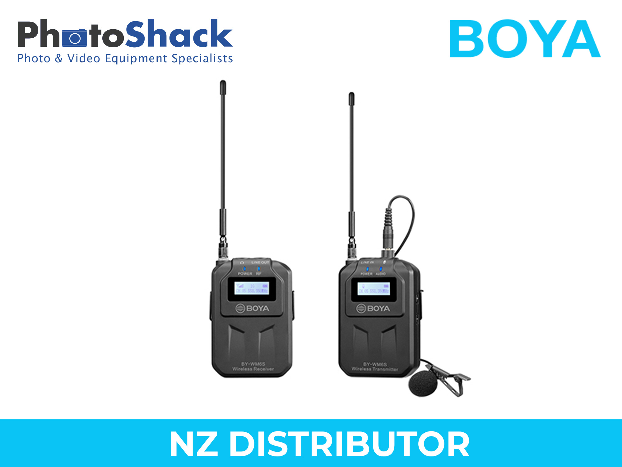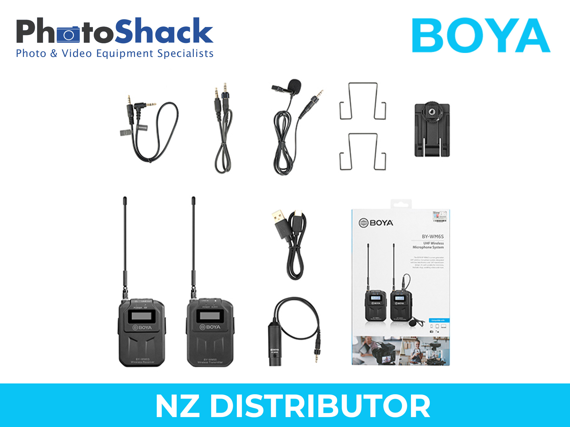The Boya BY-WM6S is a compact wireless lavalier mic system offering a cost-effective solution for recording hands-free speech from a subject to your camera, camcorder, or mobile device. The system delivers improved sound quality over built-in mics on cameras and mobile devices to supply clear, intelligible speech and dialog for journalists, YouTube/Instagram creators, vloggers, and more.