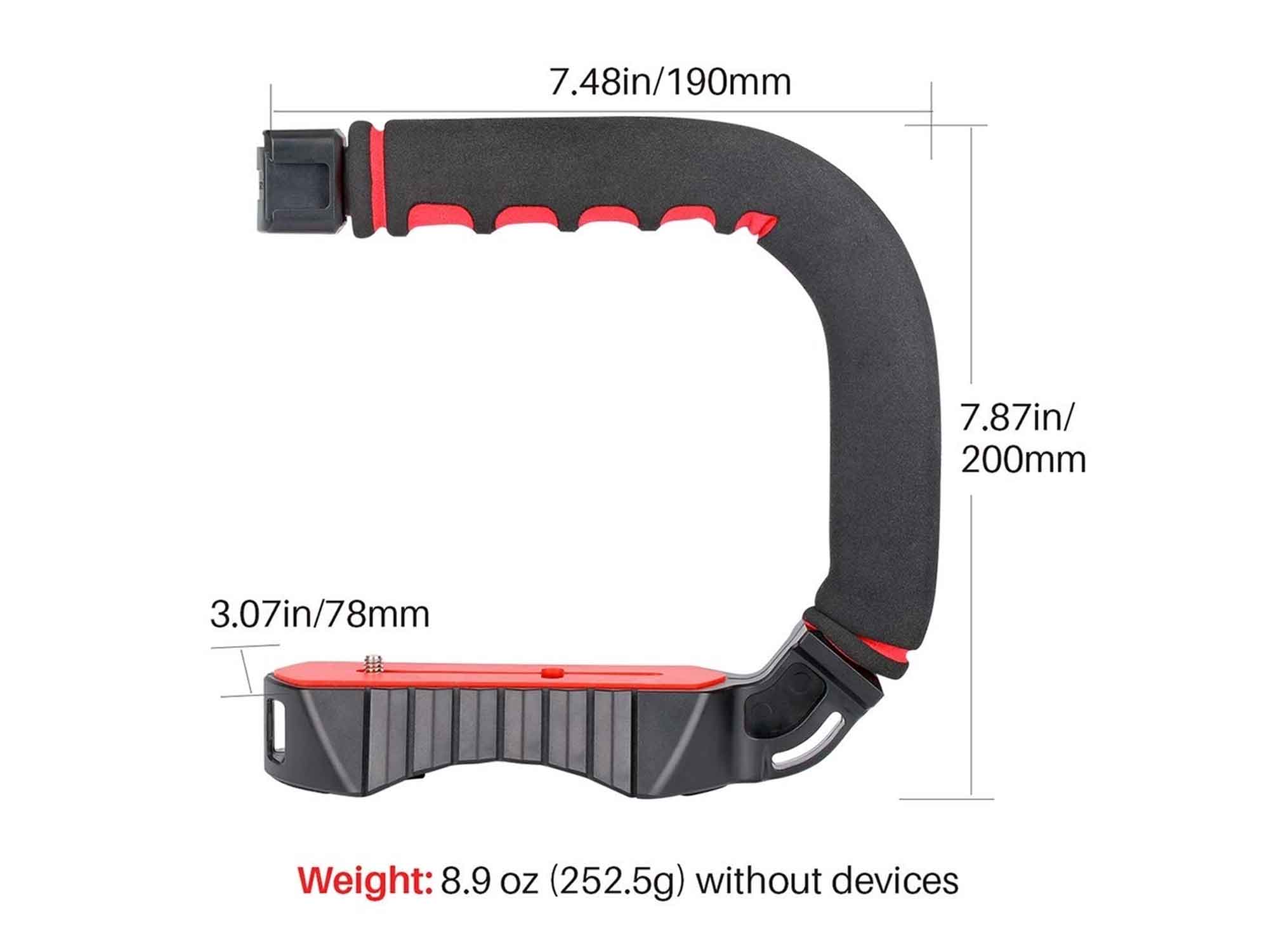 Comfortable and much safer operation with anti-slip rubber rail enables long-time use with a net weight of 0.25 Kgs. Perfect for low angle video. Ideal with SLR cameras, Phones, compact cameras, GoPro and action cameras.