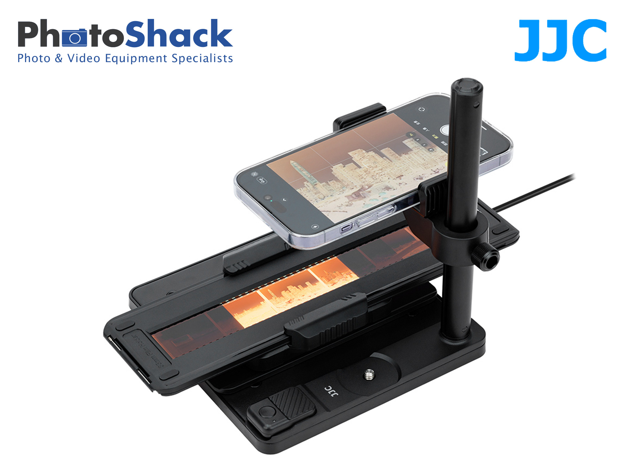JJC MFN-K1 Mobile Film Digitizing Adapter Set is specially designed for mobile phone users to rephotograph 35mm or 120 film for converting your film originals to digital files. The comprehensive set mainly includes six components, an adjustable phone clamp holder, a movable backlit panel, a metal base, a detachable wireless remote control, a 35mm film holder and a 120 film holder.