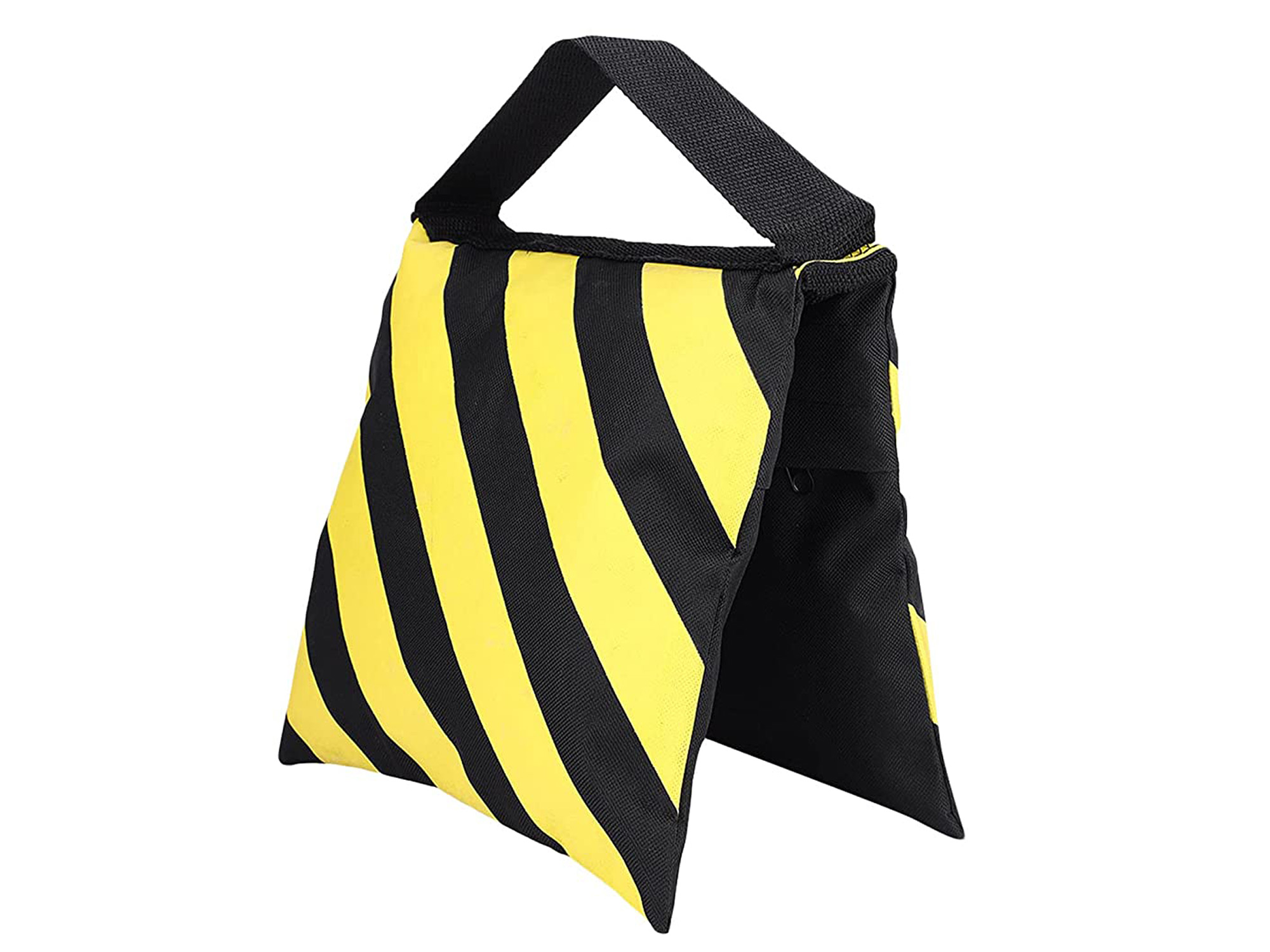 The studio sandbag can be filled, emptied, and refilled with sand, shot, or gravel. They are compact, pliable, virtually indestructible, and have a pleasant appearance. Their saddlebag design features two compartments that can be easily filled and then closed by dual internal zippers. These bags can be draped over or hooked onto light stand legs, tripods, or clamped to a light boom arm.