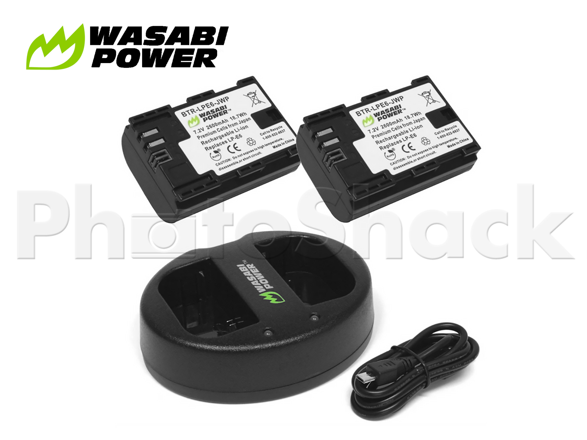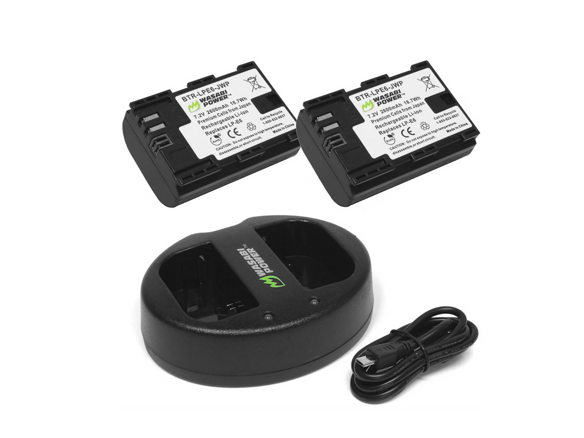 LPE6 Battery for Canon (2 Pack + Dual Charger) - Wasabi Power